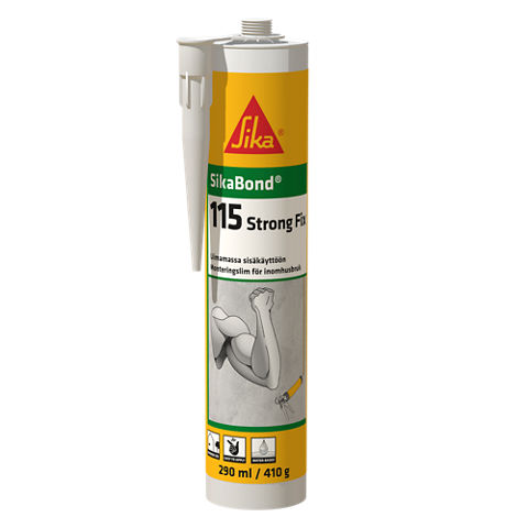 SikaBond®-115 Strong Fix er en 1-komponent montage lim med høj styrke, der binder på de fleste byggematerialer. Kan anvendes indendørs, men også udendørs, hvis overdækket eller beskyttet af UV bestandig maling.