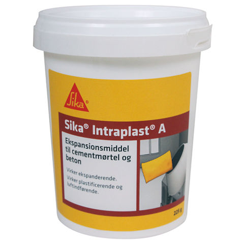 Sika® Intraplast® A er et pulver der anvendes som tilsætningsstof til beton og cementmørtel. Produktet giver en ekspanderende, homogen og let bearbejdelig beton/mørtel. Sika® Intraplast® A giver en kontrolleret forsinkelse af hvornår betonen/mørtlen sætter sig, og sikrer en bedre fordeling af cementen, der igen giver bedre flydeegenskaber og indtrængning i revner og hulrum.