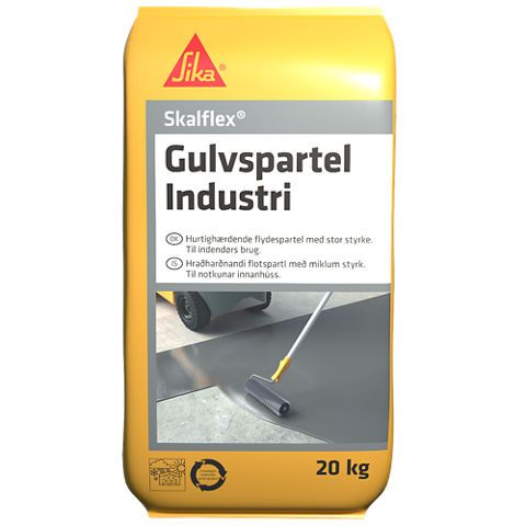 Skalflex Gulvspartel Industri er en hurtighærdende, cementbaseret flydespartel, der kun skal tilsættes vand. Produktet har en høj slidstyrke, og kan stå som færdig gulvoverflade, normalt uden yderligere støvbinding. Produktet er selvudflydende, volumenstabilt og pumpbart.