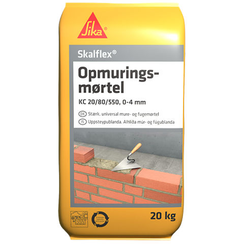 Skalflex Opmuringsmørtel KC 20/80/550 0-4mm er en stærk receptmørtel til opmuring og fugning. Skal kun tilsættes vand.