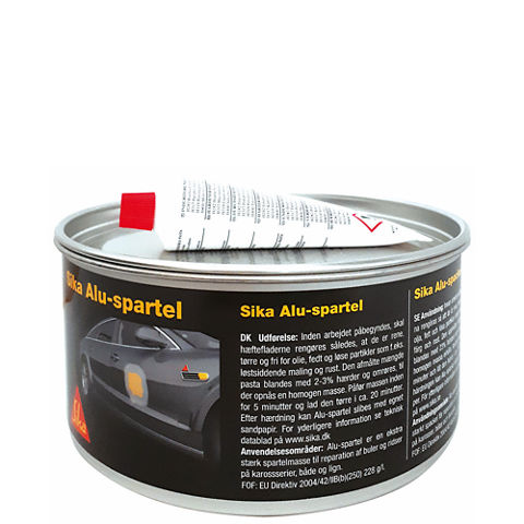 Spartelmasse til aluminium. Alu-Spartel anvendes til udbedring af dybe ridser, buler og lign. på f.eks. bilkarosserier, containere, både og surfboards.