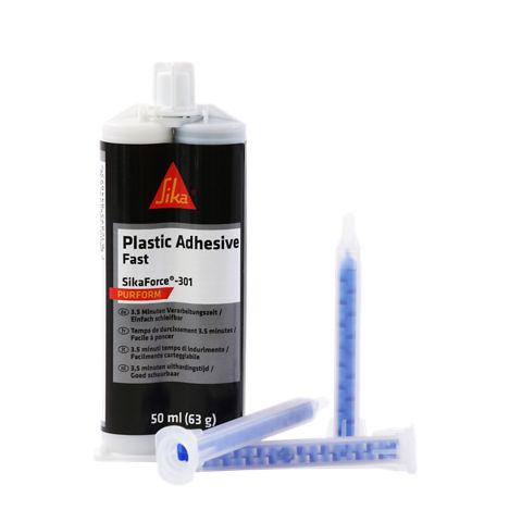 SikaForce®-301 er baseret på Purform®, en brancheførende polyuretan med mindre end 0,1 % monomert diisocyanat for bedre sundhed og arbejdssikkerhed. SikaForce®-301 er specielt designet til at reparere plastikdele på et autoværksted. Den har god vedhæftning på forskellige plasttyper og kan overmales med næsten alle typer maling.